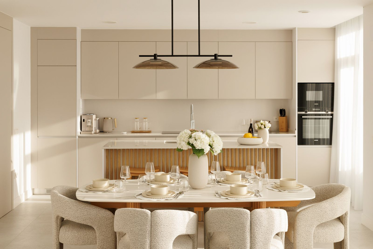 Le véritable atout de ce penthouse réside dans ses impressionnantes terrasses de 128 m², conçues pour la détente et les réceptions. Elles comprennent une piscine privée, d'élégants espaces lounge, un coin repas extérieur couvert et offrent une vue imprenable sur des jardins paysagers et une architecture moderne. Orientées à l'est, elles bénéficient d'une douce lumière matinale et de températures agréables tout au long de la journée, permettant ainsi de profiter des espaces extérieurs en toute saison.