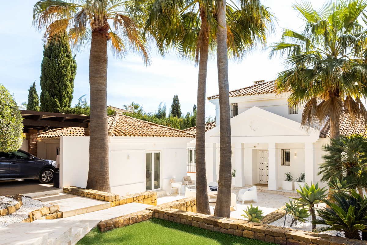Cette magnifique maison familiale andalouse, entièrement rénovée, dégage une élégance discrète et sereine. Dès l'entrée, elle offre une vue imprenable sur la mer Méditerranée. Le niveau principal, conçu pour une transition fluide entre intérieur et extérieur, comprend une cuisine ouverte sur la salle à manger et le salon, qui s'ouvre directement sur une vaste terrasse couverte. De là, la vue embrasse la piscine, le golf et la Méditerranée, créant un cadre idéal pour des matins paisibles comme pour des moments de détente entre amis.