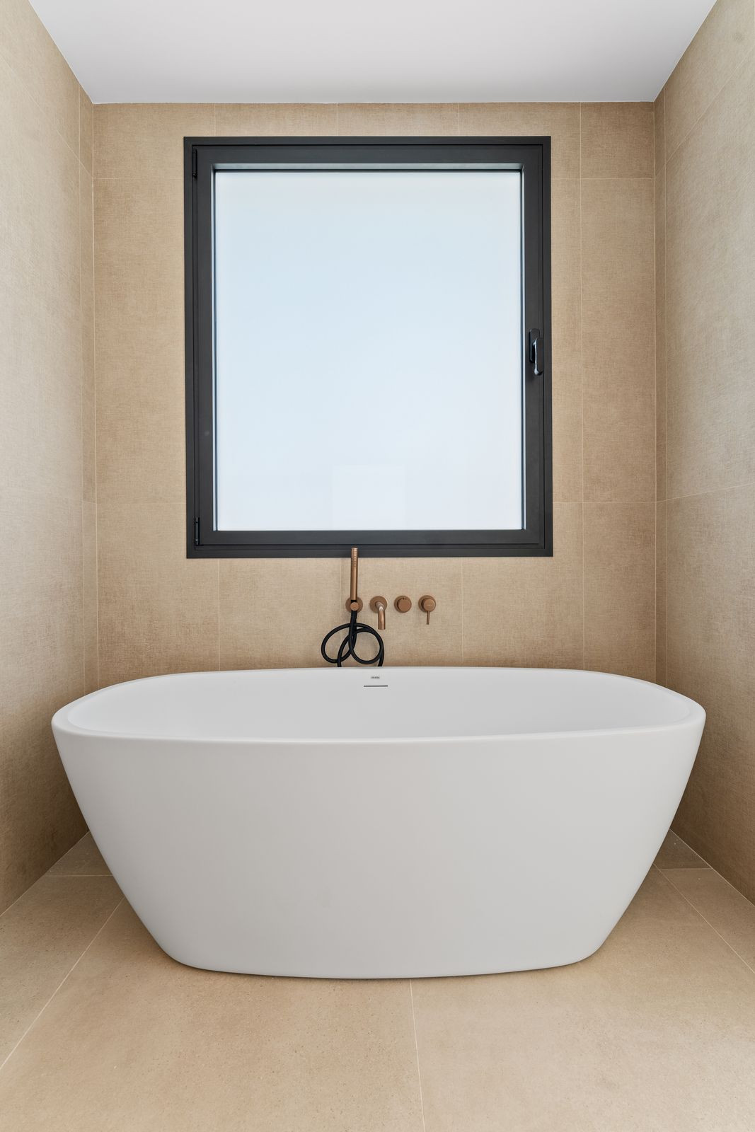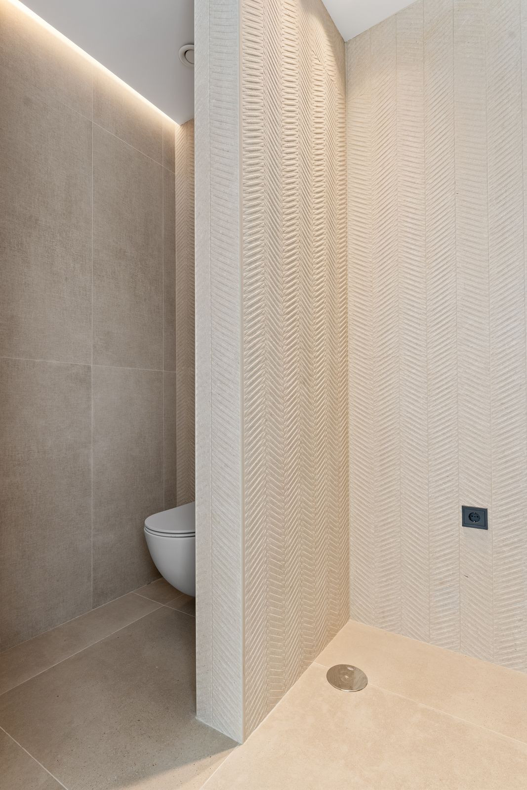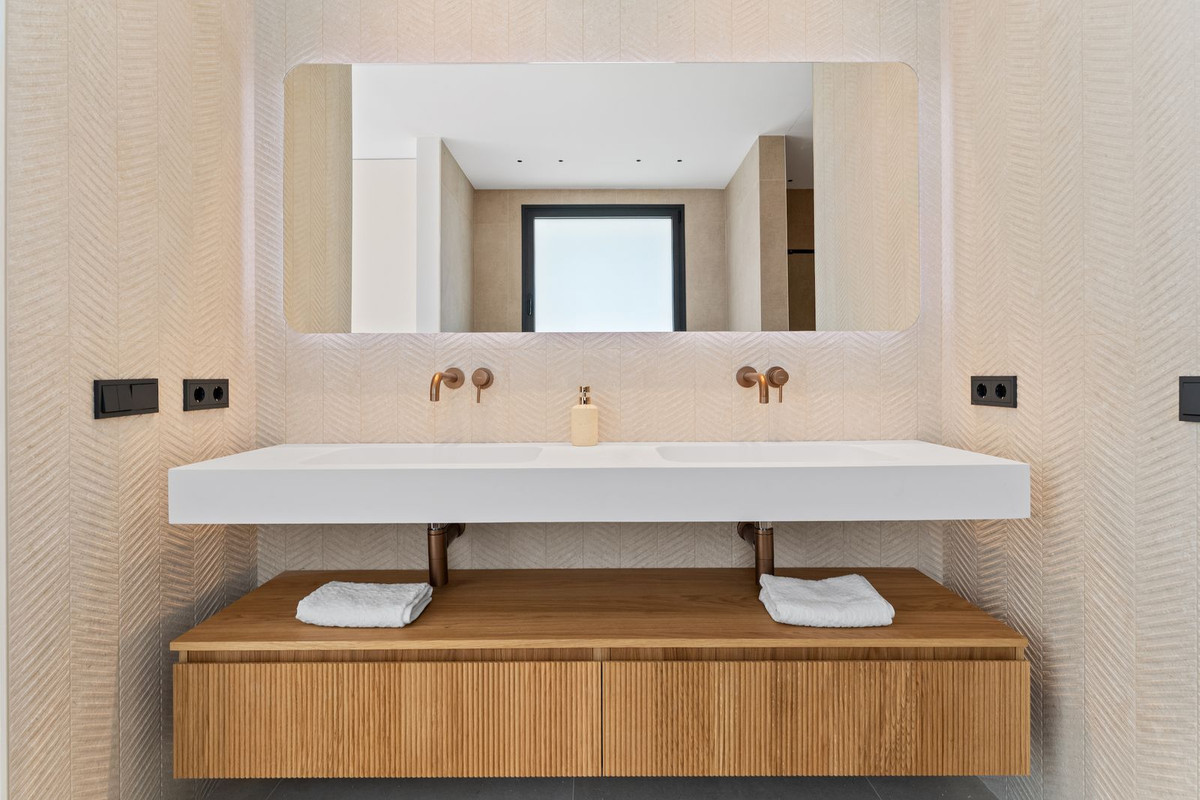 Chaque élément de la construction a été choisi avec un souci constant de qualité, de durabilité et d'esthétique. La cuisine est équipée de meubles Porcelanosa, assortie à un carrelage en porcelaine au sol et aux murs de la même marque prestigieuse, créant ainsi une finition harmonieuse et élégante dans toute la propriété. Les fenêtres en aluminium Strugal intègrent la technologie de rupture de pont thermique, un double vitrage de sécurité, un contrôle solaire et un vitrage à faible émissivité, garantissant une excellente isolation, une efficacité énergétique optimale et une sécurité renforcée.
