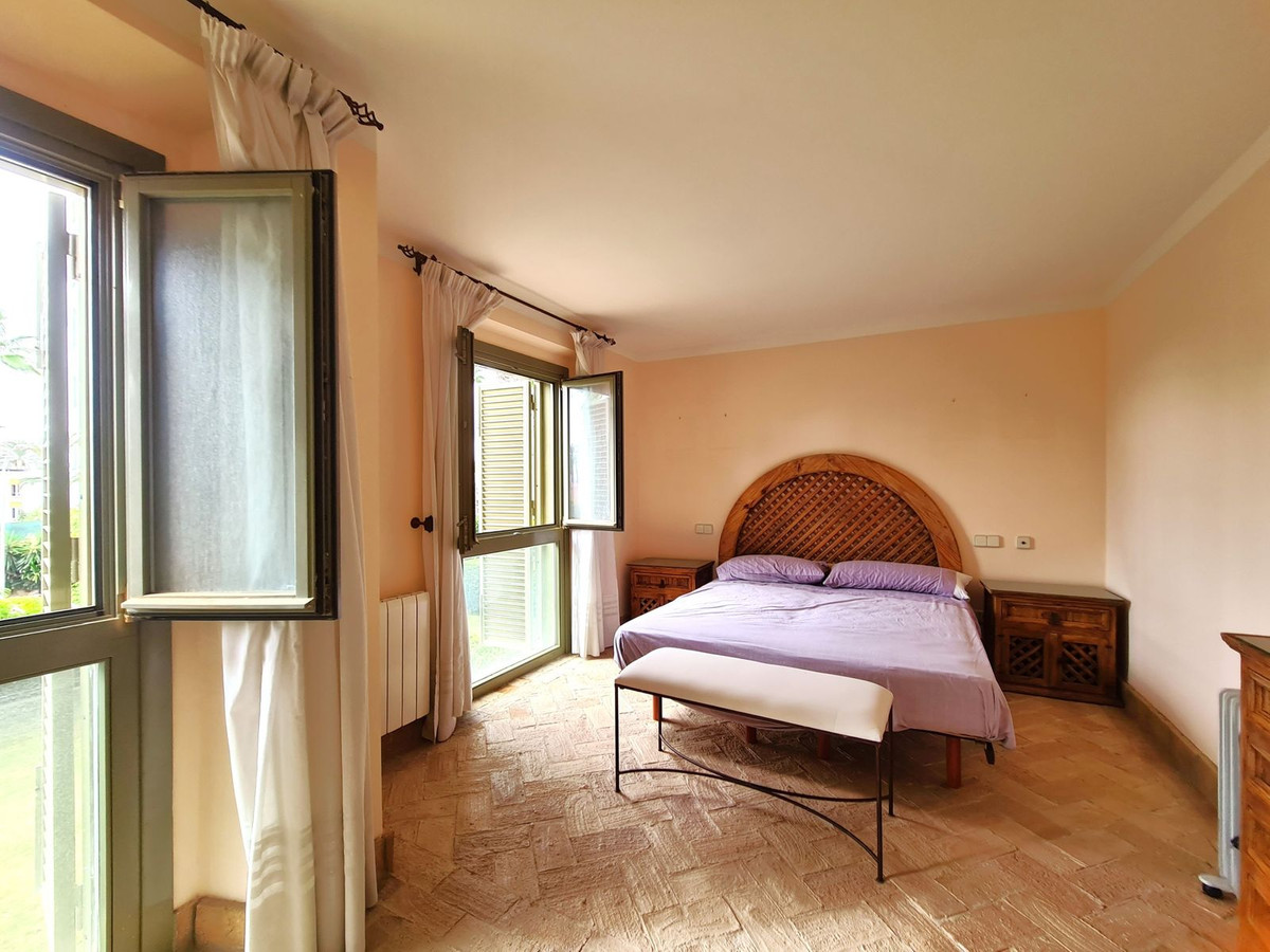 Située dans l'un des quartiers résidentiels les plus huppés de Sotogrande, cette propriété se trouve à seulement 2 minutes à pied de la plage, bénéficie d'un accès direct aux emplacements du port de plaisance et est proche des restaurants, bars de plage et commerces. Son emplacement privilégié séduira les amateurs de sports nautiques, de tennis, de padel et de golf. À seulement 20 km de l'aéroport de Gibraltar et à 95 km de l'aéroport de Malaga, elle est idéale comme résidence principale ou secondaire. La propriété, orientée sud-ouest, est répartie sur deux niveaux. Au rez-de-chaussée, un hall d'entrée spacieux dessert un vaste séjour-salle à manger avec cheminée et accès au grand jardin privatif. On y trouve également une cuisine spacieuse et entièrement équipée, donnant sur une véranda qui communique avec le jardin. Au rez-de-chaussée se trouve l'une des trois chambres de la propriété. Cette chambre spacieuse dispose d'un grand placard intégré et d'une salle de bains privative. À l'étage, deux autres grandes chambres avec de nombreux placards intégrés et de spacieuses salles de bains privatives. L'une de ces chambres bénéficie d'un accès direct au solarium. Cette propriété comprend un grand parking privé à l'entrée pouvant accueillir deux voitures, ainsi qu'un accès à de magnifiques jardins communs et à une piscine. Une occasion unique de profiter du luxe de la vie en bord de mer ! Nous vous recommandons vivement de visiter ce bien.