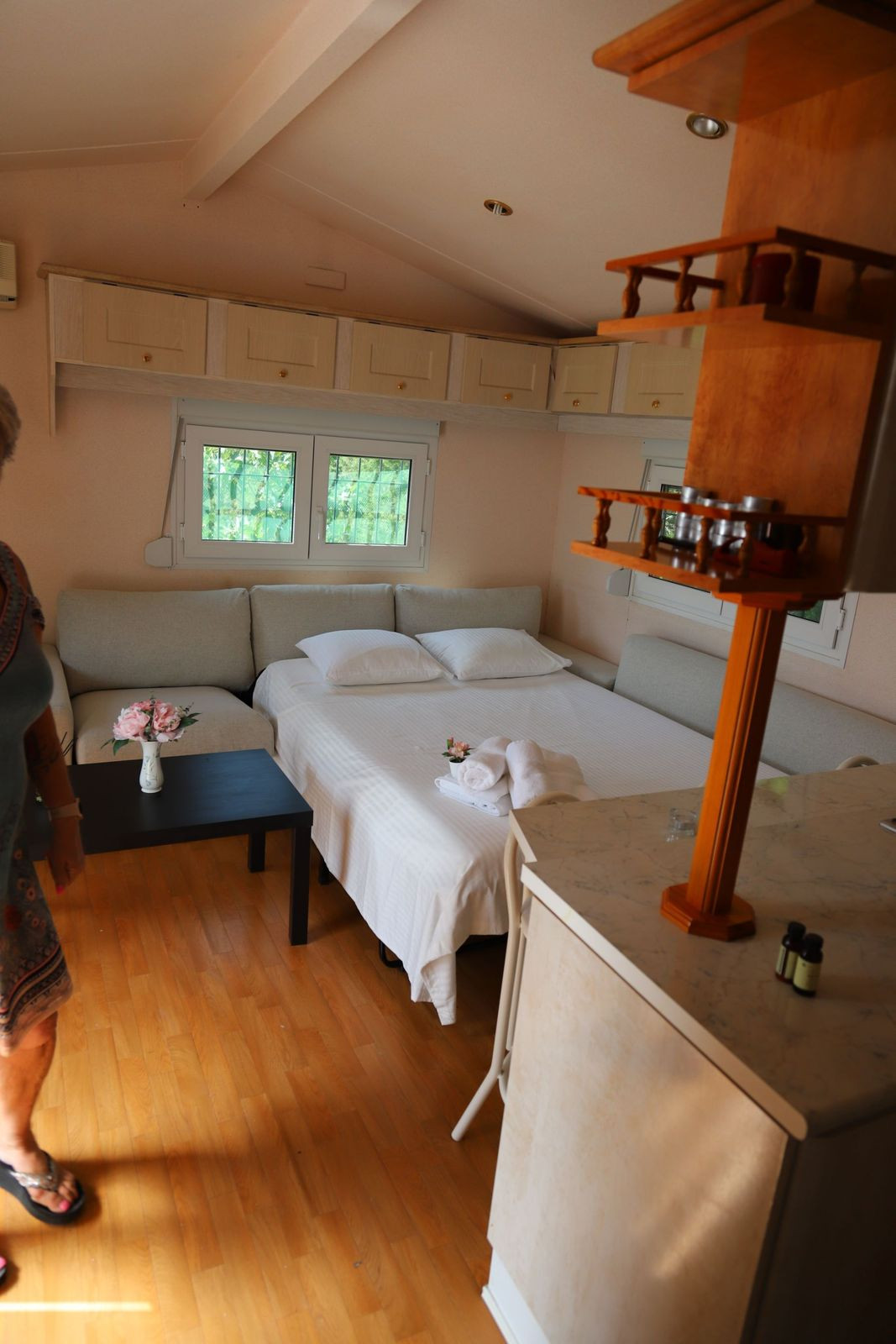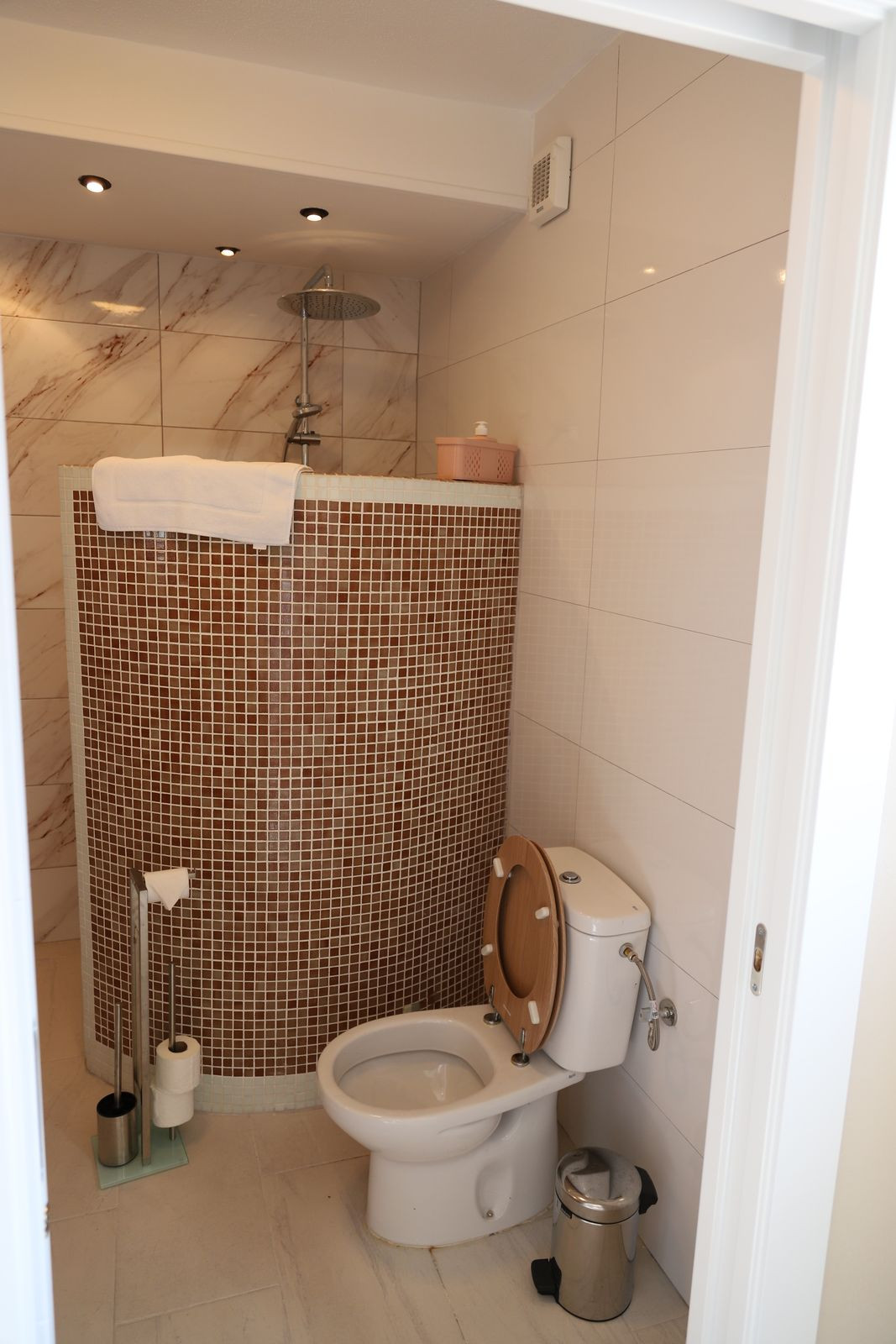 De l'autre côté de la piscine se trouve une maison d'hôtes avec deux chambres et une salle de bain. Actuellement proposée comme hébergement alternatif, elle est particulièrement adaptée aux familles avec enfants grâce à sa terrasse privée offrant une vue magnifique. La chambre est climatisée et dispose d'une cuisine équipée.