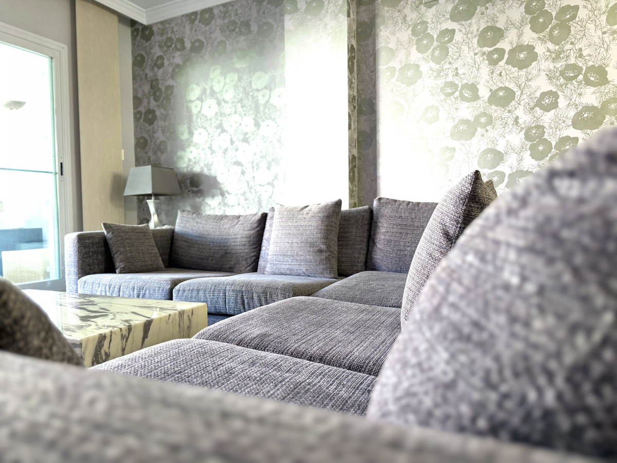Situé dans une résidence sécurisée de prestige, cet appartement a été conçu avec un souci du détail alliant fonctionnalité et élégance. Les vastes pièces de vie, comprenant un séjour et une salle à manger, bénéficient de fenêtres à double vitrage, de placards intégrés et du chauffage central, complétés par la climatisation pour un confort optimal en toute saison. Entièrement meublé, ce logement dispose d'une cuisine moderne, entièrement équipée et aménagée, ainsi que d'une buanderie et d'un espace de rangement séparé, pour une organisation et une praticité au quotidien.