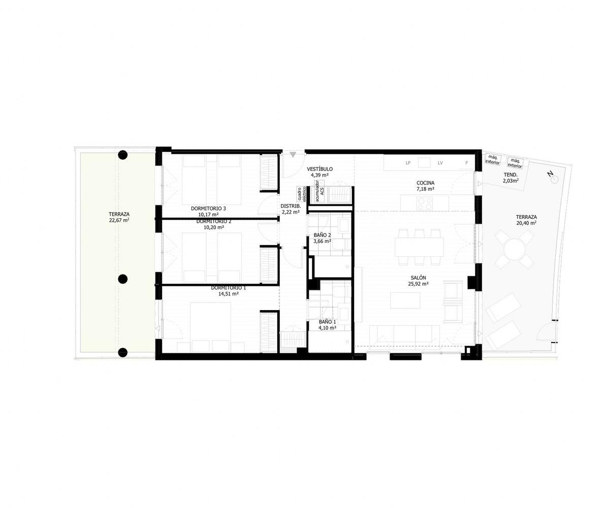 Conçu pour allier style de vie et flexibilité, cet appartement offre des espaces de vie lumineux et décloisonnés, donnant sur une vaste terrasse privative idéale pour se détendre, recevoir et profiter du climat méditerranéen toute l'année. La terrasse donne directement accès à la piscine commune. L'appartement comprend également une cuisine entièrement équipée et deux terrasses, une à l'avant et une à l'arrière.